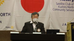 そして本日ここに、釧路北地域奉仕ロータリー衛星クラブがRIより認証を受け、このような式典を開催する運びとなり、会員皆様のご理解とご協力にも心より感謝申しあげます。何よりも、今年度にて認証を受け、この場に立ち会えたことを大変光栄に思うところでございます。
