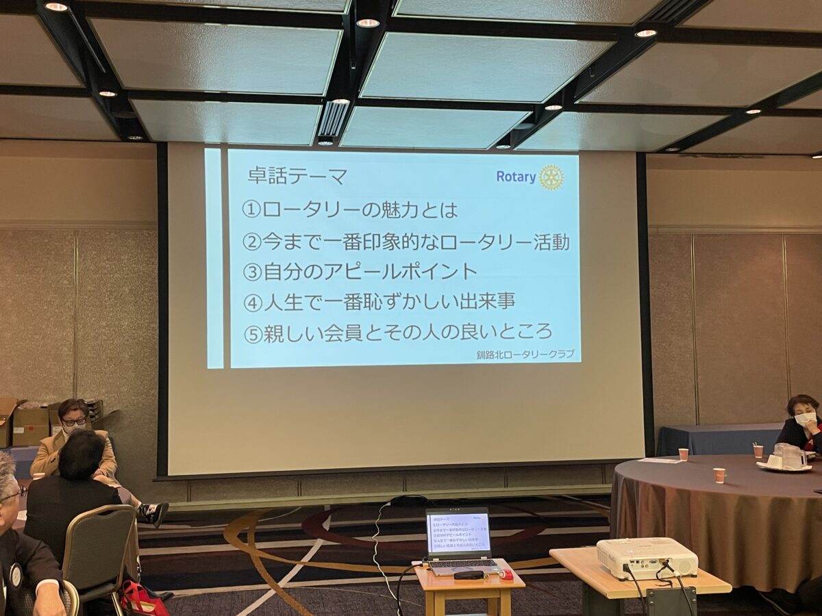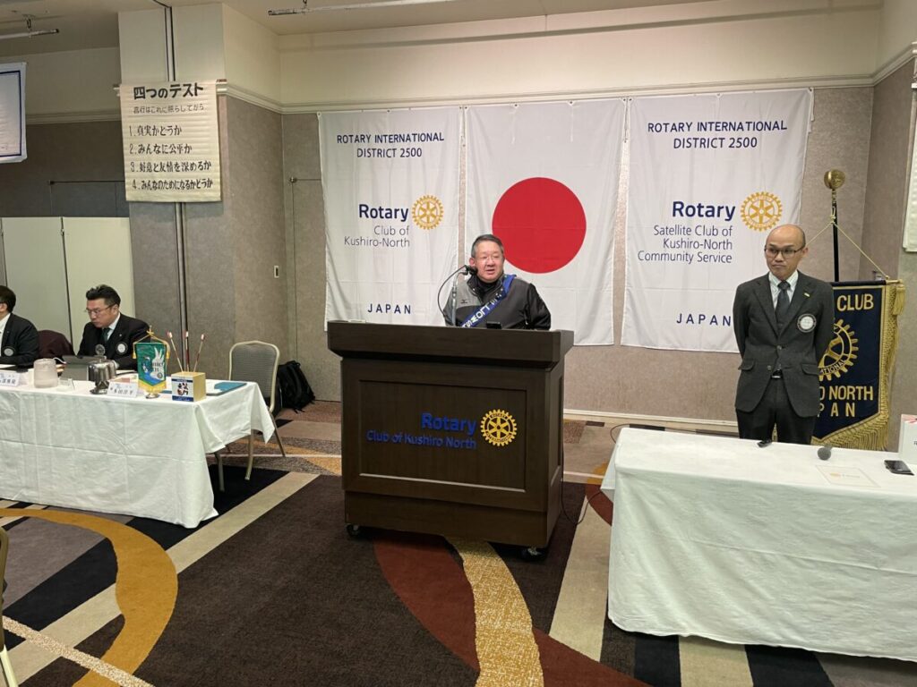 また来週には、地区補助金事業を開催いたします。詳細につきましては改めてご案内いたしますが、まりも学園の子どもたちを中心に、市内の小学生を合わせて約50名にご参加いただき、ウィンターパークの会場を貸し切り、冬場に外出の機会が減りがちな子どもたちの健康増進・維持を目的とした事業を行います。あえて例会扱いとして、多くのメンバーの皆さまにご参加いただきたいと考えておりますので、どうぞよろしくお願いいたします。
