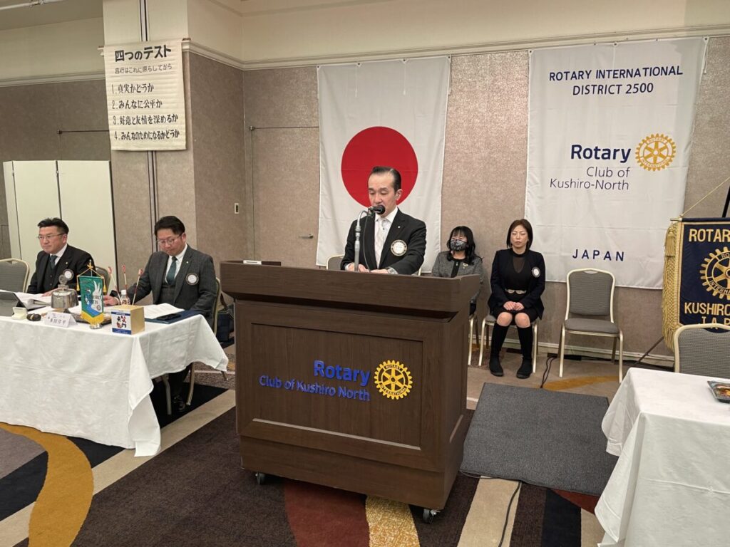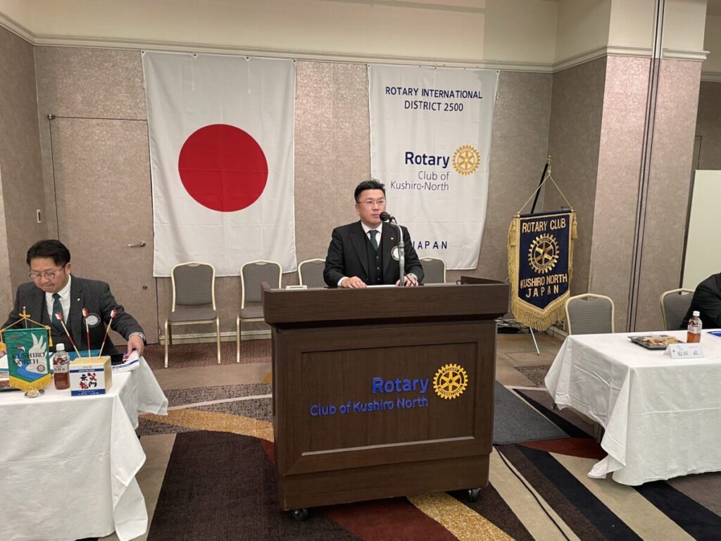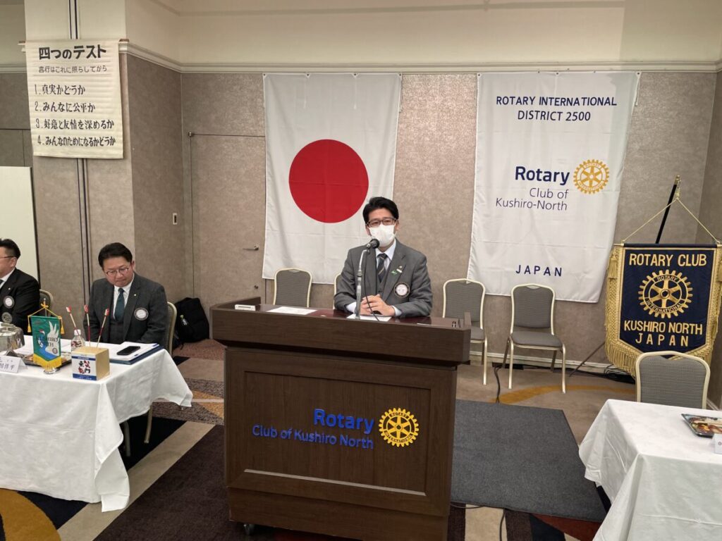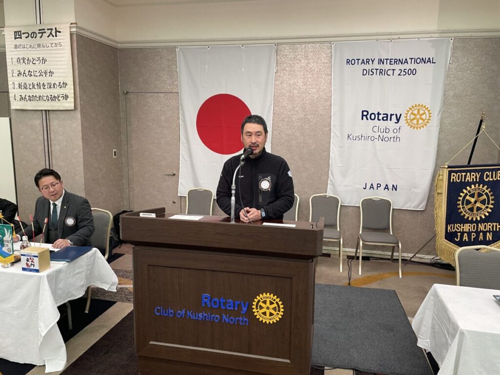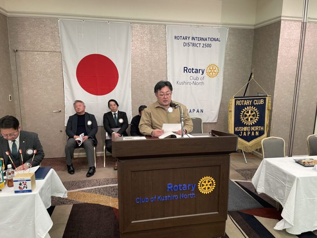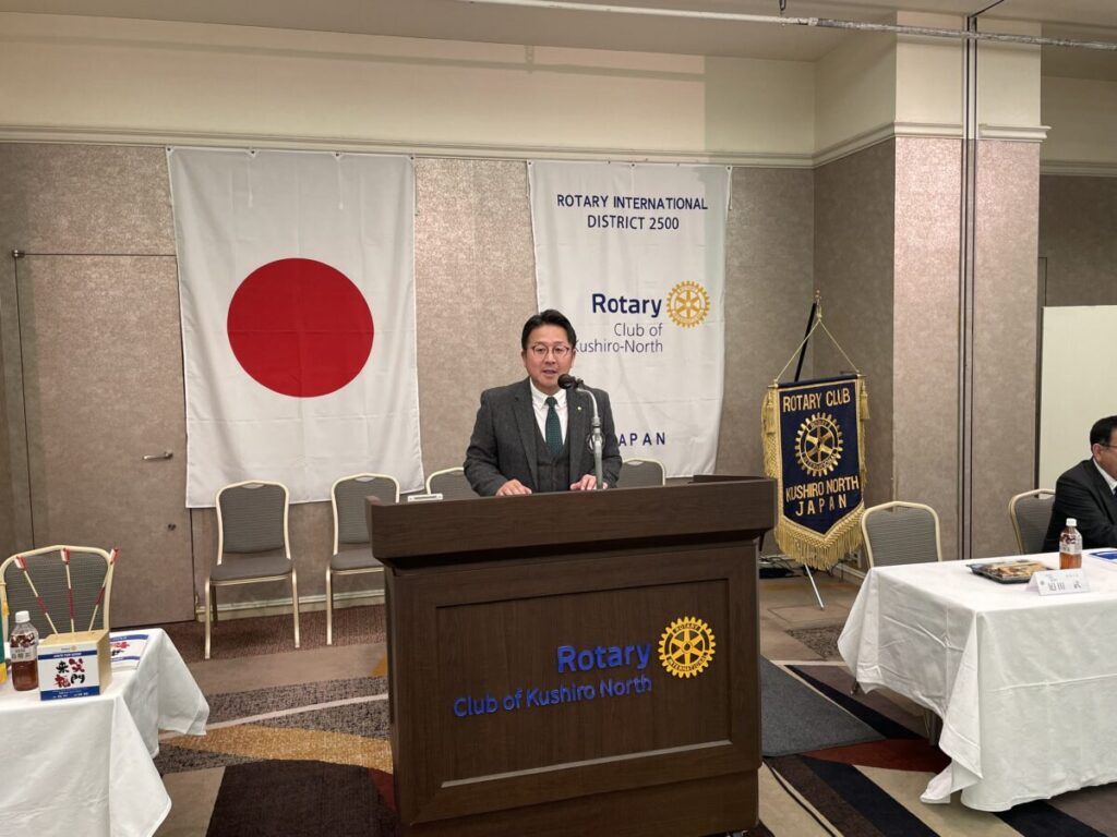 1月22日(木)、帯広西ロータリークラブ様にて、佐渡ガバナー、平井地区幹事ご参加のもと、山岸地区社会奉仕委員長が地区社会奉仕委員会の取り組みについてご講演されました。