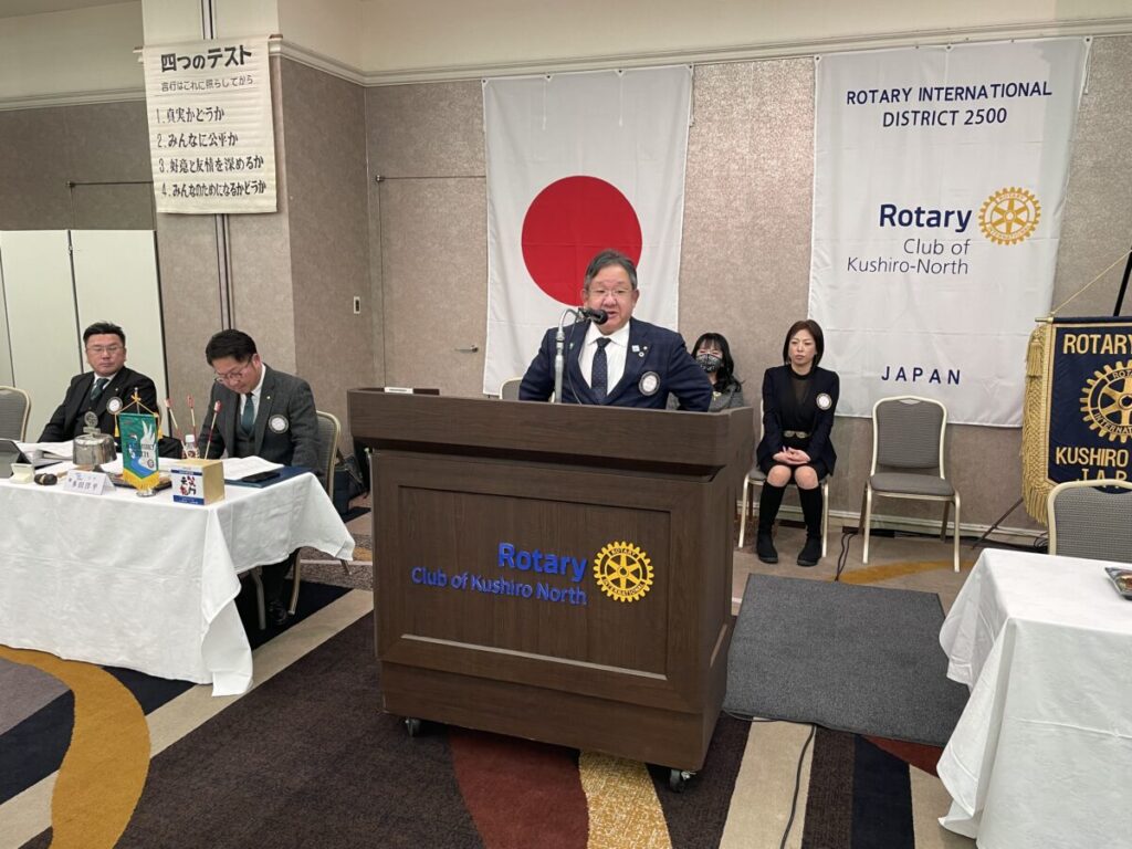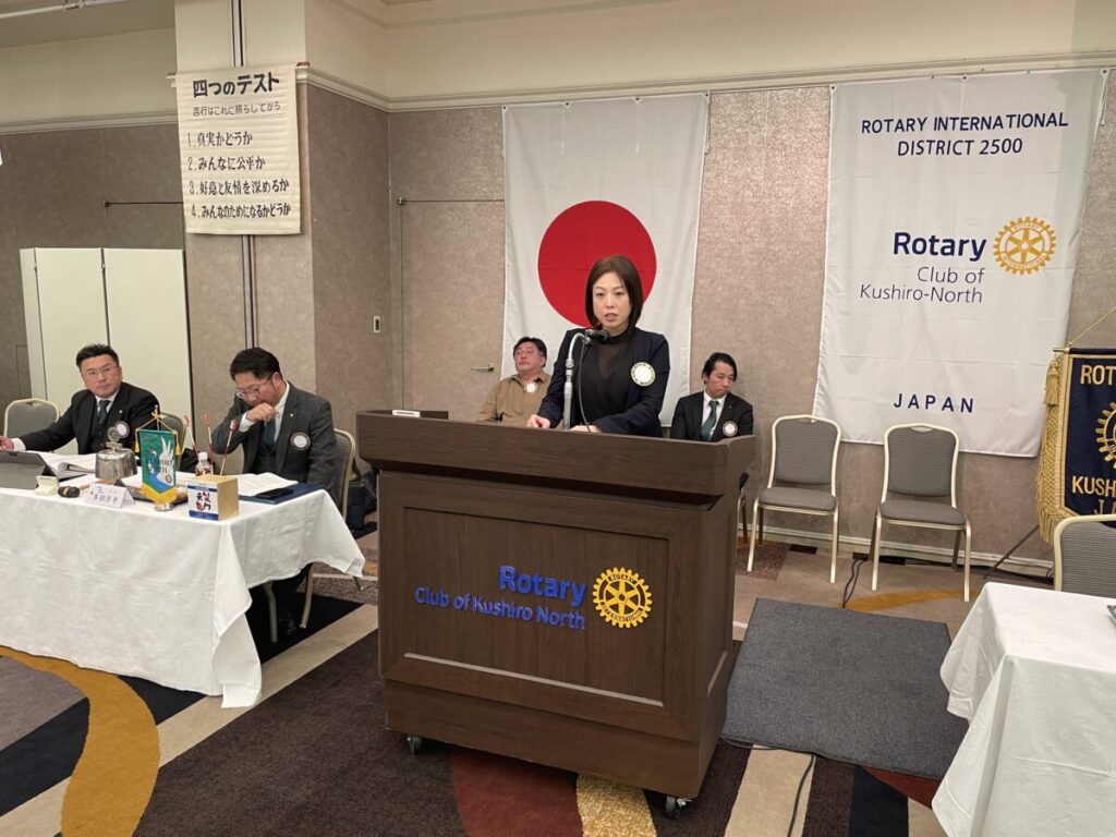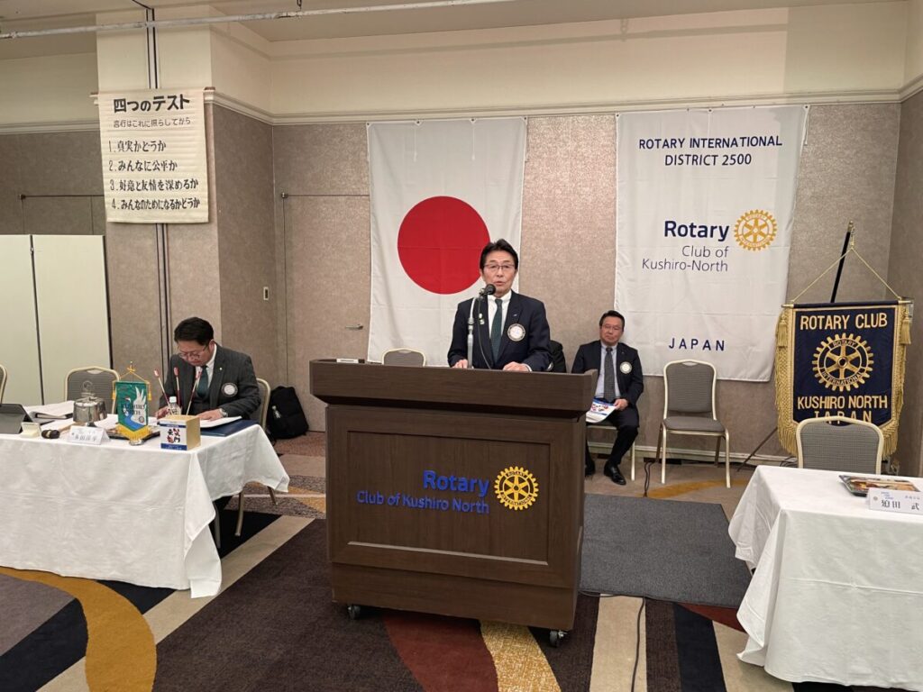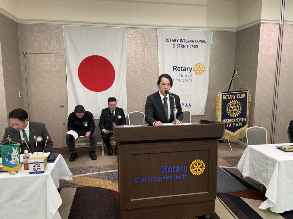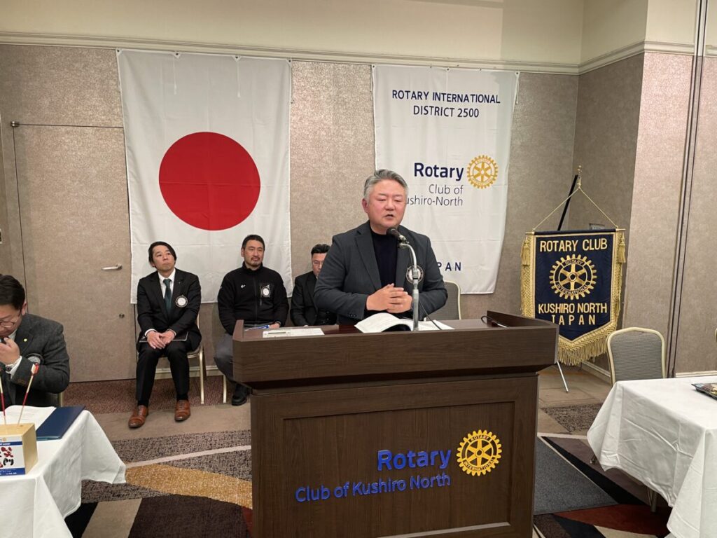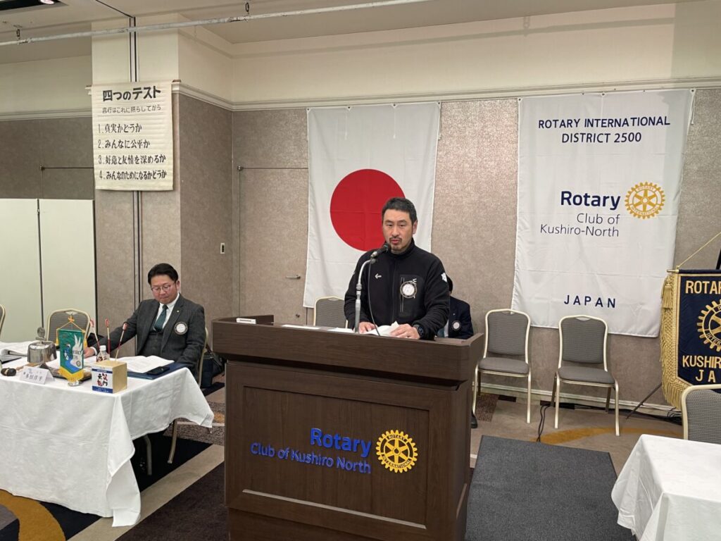 1月22日(木)、帯広西ロータリークラブ様にて、佐渡ガバナー、平井地区幹事ご参加のもと、山岸地区社会奉仕委員長が地区社会奉仕委員会の取り組みについてご講演されました。