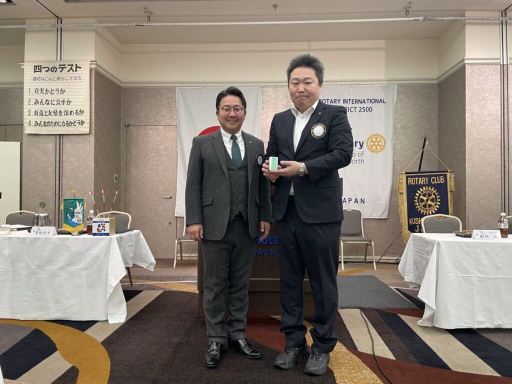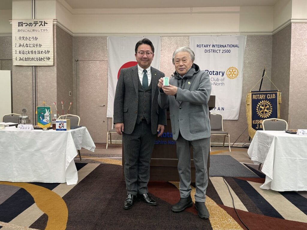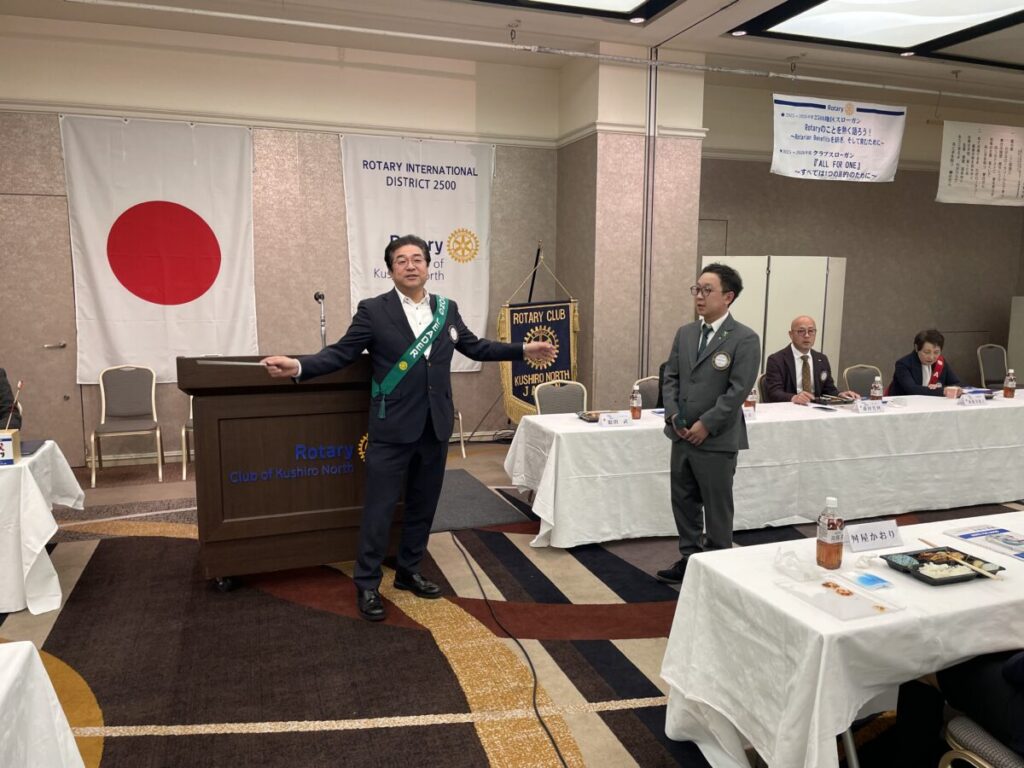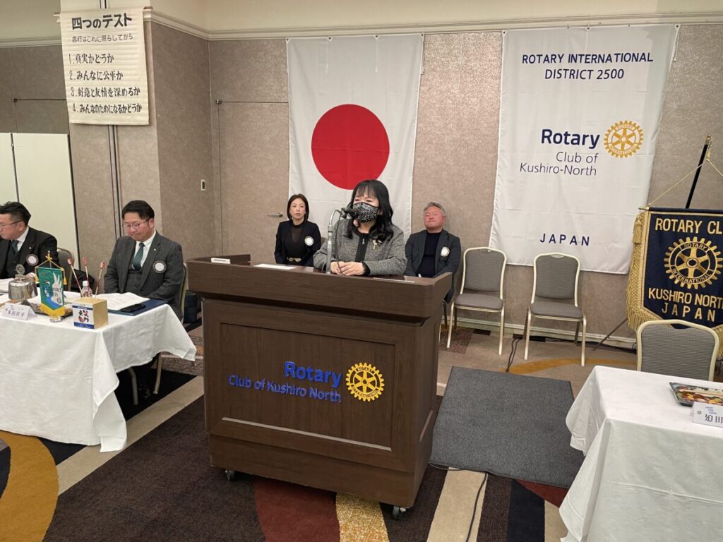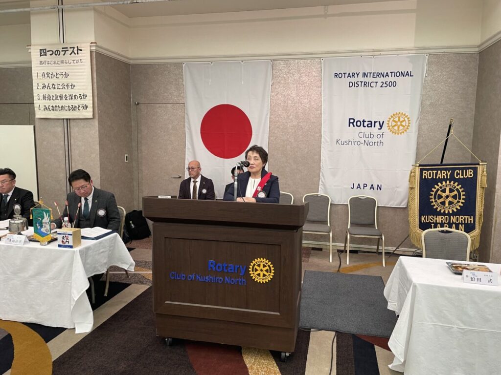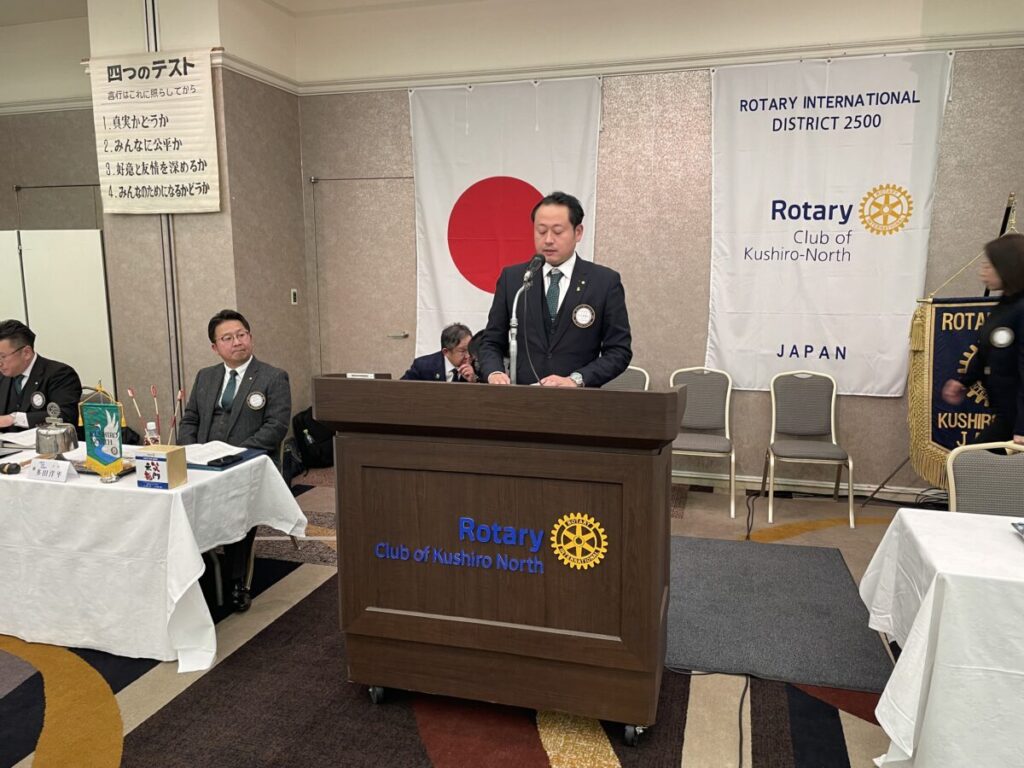 1月22日(木)、帯広西ロータリークラブ様にて、佐渡ガバナー、平井地区幹事ご参加のもと、山岸地区社会奉仕委員長が地区社会奉仕委員会の取り組みについてご講演されました。