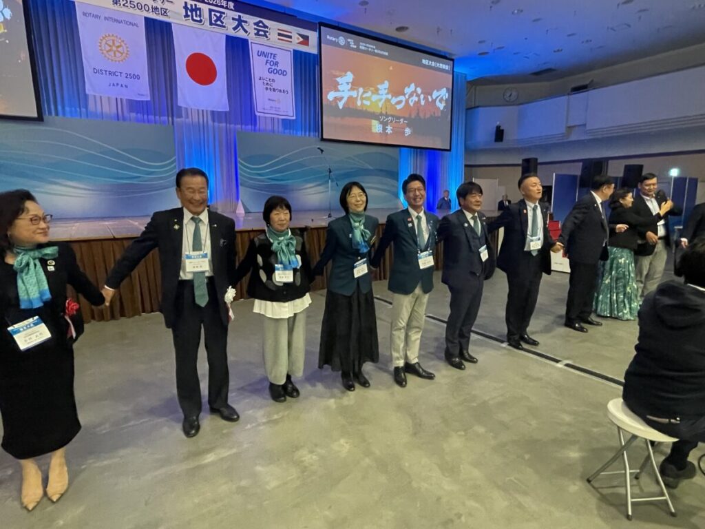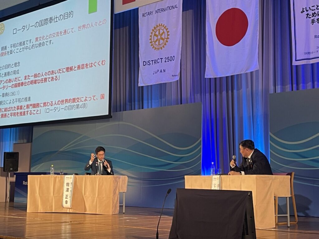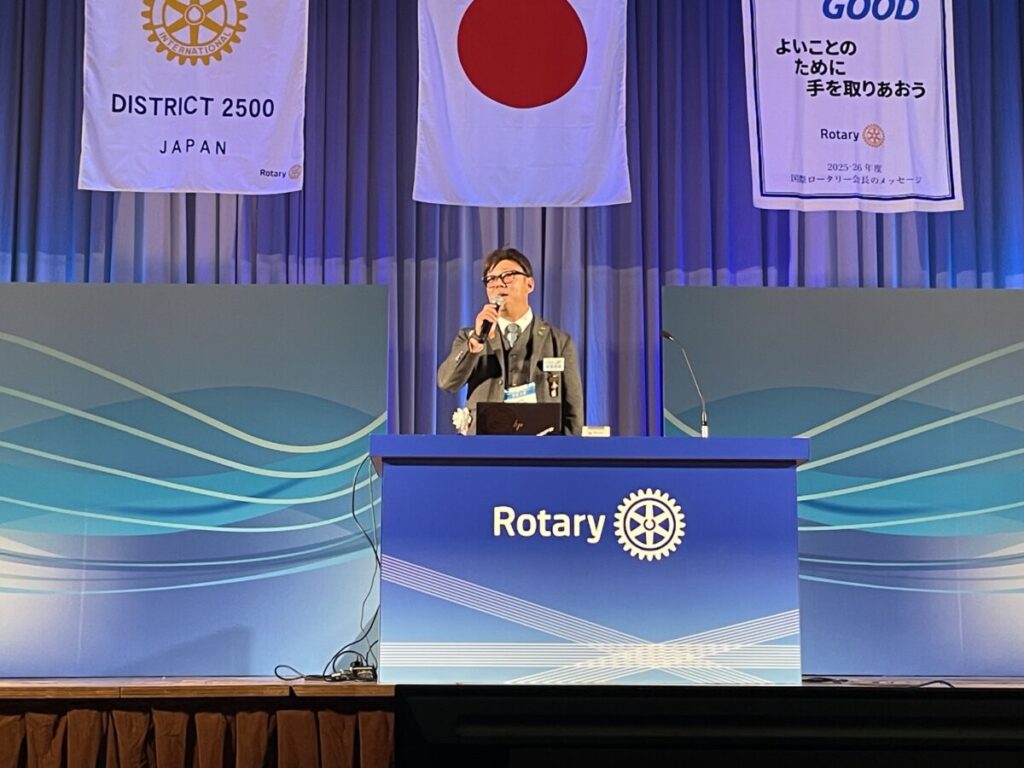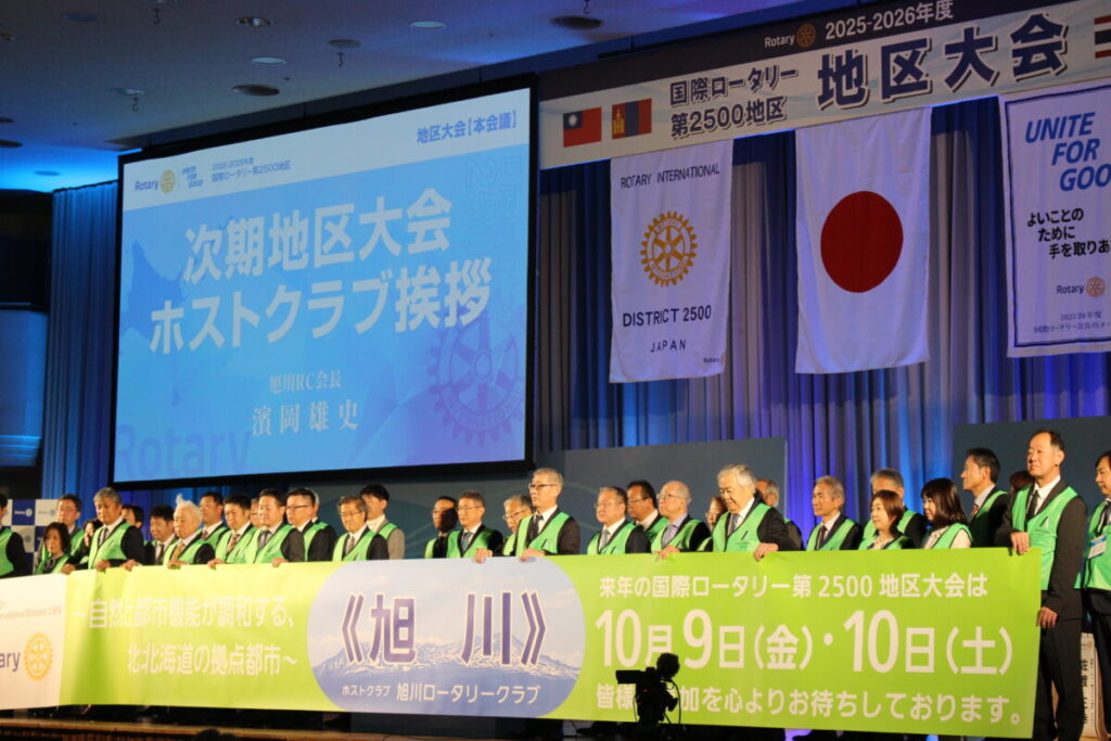 2025─2026年度国際ロータリー第2500地区の地区大会が10月24日から26日の日程で開催されましたた。25日の本会議は釧路市観光国際交流センターで開催され、招待された海外のロータリアンらを含め約1200人が参加。佐渡ガバナーはあいさつで「国際ロータリーは親睦と奉仕を通じて平和につながる活動を120年間にわたり行っている。この地区大会においてロータリーの意義と方向性を皆さんとしっかり考えていきたい」と述べ、さらに「地区のスローガンとして〝Rotaryのことを熱く語ろう! Rotarian Benefitsを紡ぎ、そして育むために〟を掲げている。この語る、紡ぐ、育むの精神をこの会議で皆さんと一緒に考え、そして、さまざまなロータリーの新たな魅力というものを探す大会にしたい」と強調しました。 また、各種表彰や釧路市への記念事業目録贈呈も行われ、地区大会の事業の一環として釧路市の青少年の育成および、住民の健康増進、疾病予防に資する事業に対して100万円を寄付しまし。
